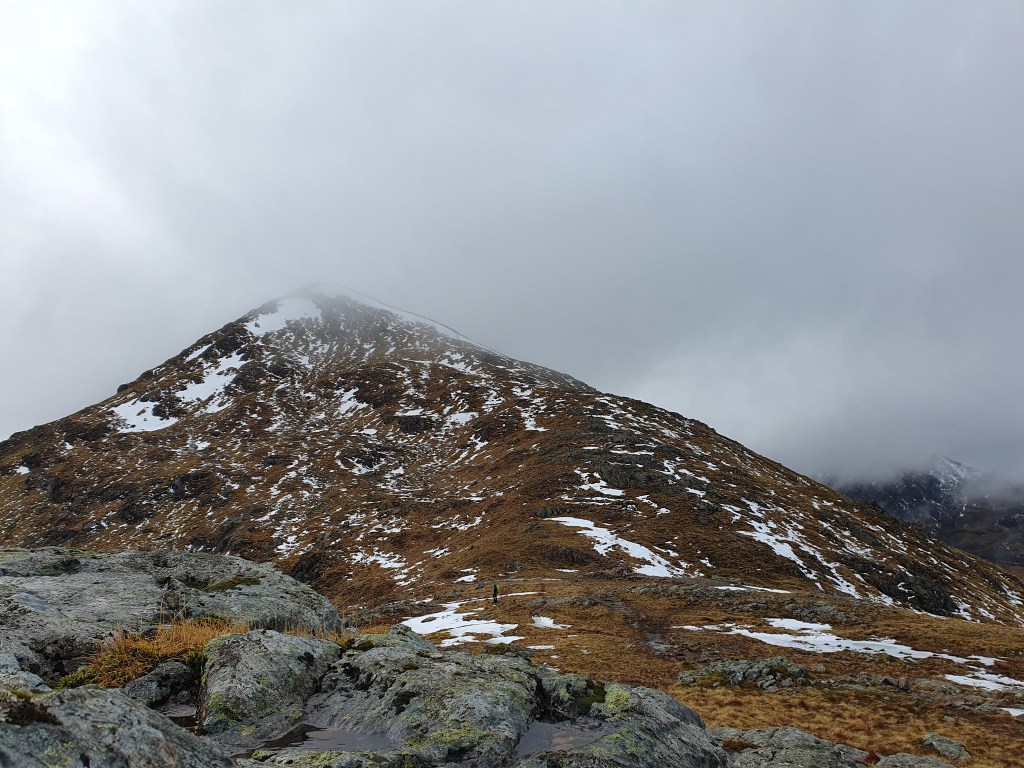 Angus and Lorn arrived at Lagangarbh mid-morning with a plan to do Buachaille Etive Beag from Altnafeadh…Lorn’s plan that is, having omitted to share the details with Angus, who’d diligently printed maps and taken bearings for the Lairig Eilde approach, only discovering this as they hoofed it up the Lairig Gartain track instead! They left the track, initially heading for the bealach but the steep approach meant it was just as “easy” to make a beeline for Stob Coire Raineach and soon popped out just shy of the summit to very decent views of the immediate area, the slow-moving light cloud adding to the atmosphere. Heading for the bealach, two other walkers were enjoying lunch there and our pair decided to do the same. During this break, an 11-strong party appeared and lunch was brought to an abrupt end, followed by a swift march up on to Stob Dubh to put some distance between them and the ensuing throng. The thin cloud on Stob Dubh was a little more stubborn and, despite extending the walk a bit further along the ridge, the epic view down Glen Etive proved elusive, but for a couple of fleetingly hazy glimpses. As the pair made their way back to the bealach once again, they encountered the aforesaid eleven, also descending, having obviously only gone as far as the 902m spot height, before turning back (their “guide” telling them it was too far to go to the summit!?). It turned out they were a party over from Ireland for a St Patrick’s Day weekend and Lorn was disappointed to learn that Angus didn’t know any of them!