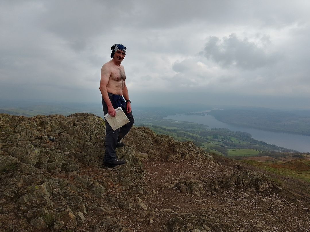 The club’s second visit to the Agnes Spencer Memorial Hut at Grisedale Bridge in Patterdale, would eclipse the first in many ways. The weather prospects were better for a start and it was a healthier turnout than previous, when only Raymond and Lorn represented the Scottish-based contingent. Leading up to this stay, the previous weekend had been beautifully sunny and warm, but the early part of the week saw a fair bit of rainfall in the area. However, any fears were unfounded and the weather gods were with us, ably demonstrated by this fine figure of a man…
