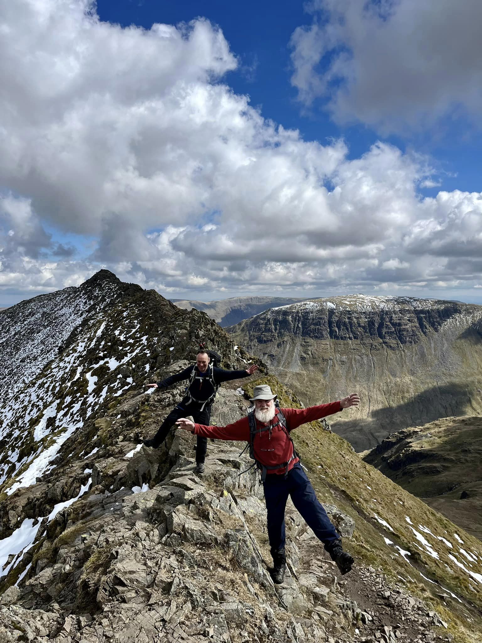 Louise, Mike P and Ian D also opted for Helvellyn, via the edges and the Pikes. They ventured up over Swirral Edge and back via Striding Edge, which was proving tricky today because of lots of deep, wet snow still lying in the sheltered spots. In between, they also netted Nethermost and Dollywagon (to be known, henceforth, as Dolly Parton) Pikes…another great day had.