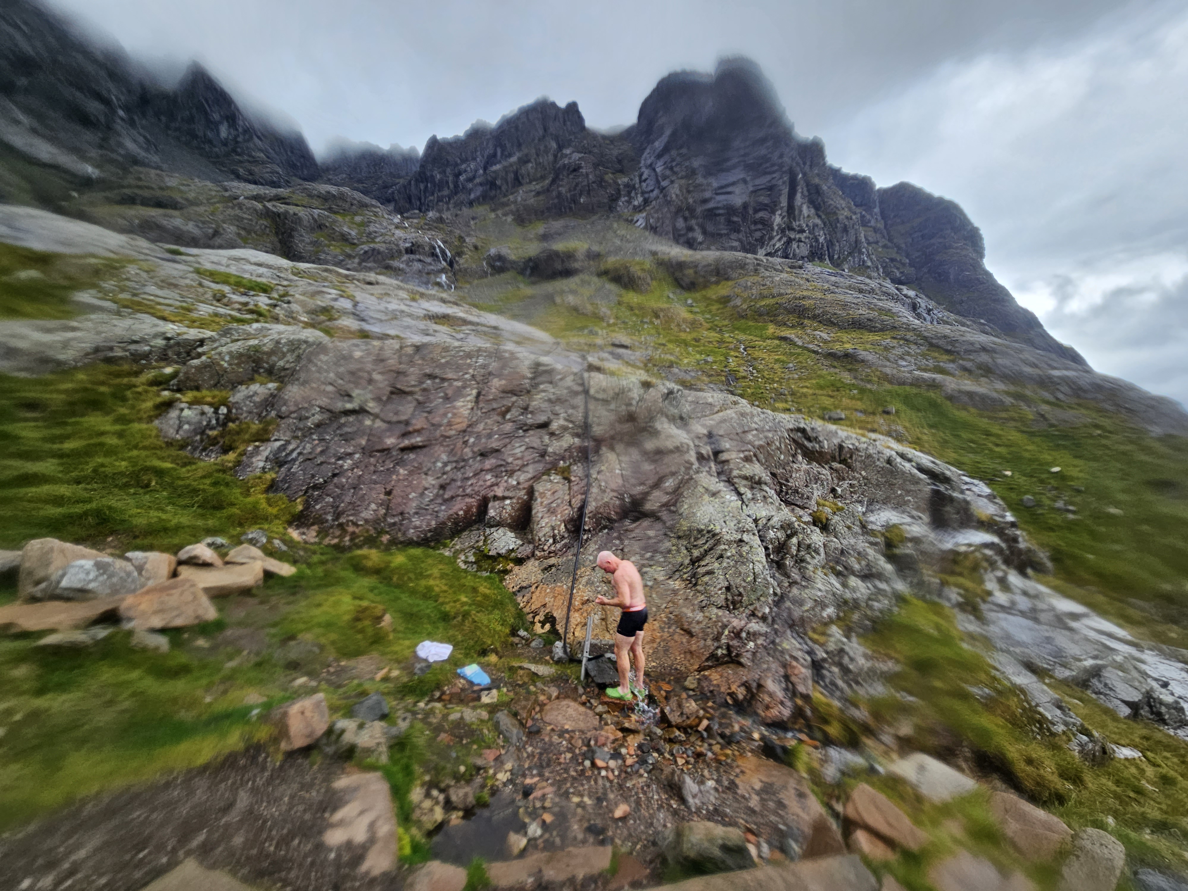 Back at the hut and after a dip under the Allt a’ Mhuilinn stand-pipe, the processes of rewarming, refuelling and rehydration commenced…along with the usual shenanigans of course.