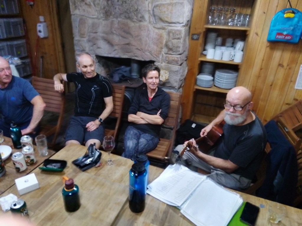 Having chosen music over alcohol, but thankfully not coffee or chocolate, Gerry had very kindly lugged his guitar up the track to the hut along with the rest of his gear. There a was a real sense of occasion about this special place and Gerry belted out the tunes for a good while, particularly as hopes of getting out on the hill in the morning seemed unlikely, due to the ever-increasing wind speeds outside.