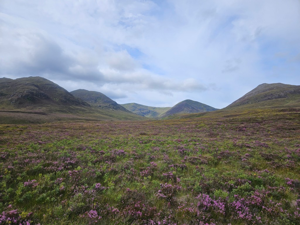 Lorn and Angus headed a little further North to Loch Lochy. Thankfully, Mike’s hill was keeping the wind off them and both managed to achieve their respective targets of Meall na Teanga (Angus nabbing the second of the pair that the weather had intervened on back in January at the Burns Meet, once again using the bike to take the sting out of it), while Lorn was on the nearby Corbett, Ben Tee where, more challenging than the wind, was avoiding several helicopter passes with huge concrete blocks dangling from them and swaying around in the wind, for the Hydro works further up the glen (and yet another newly bulldozed track encircling the base of Ben Tee, from the Loch Garry side).