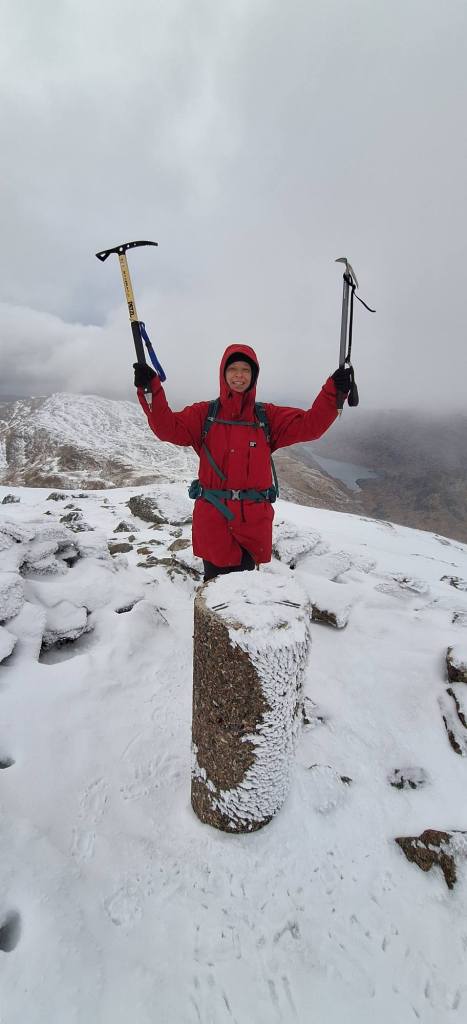 Mike had the Ben in his sights and was content to tackle it via the “tourist route” . He had ascended Britain’s highest mountain several times previously, but views from the top had eluded him. Surely this time would be different! Some clag was whirling around when he reached the top, but the outlook was breathtaking, especially over towards Tower Ridge which some hardy souls were ascending.
