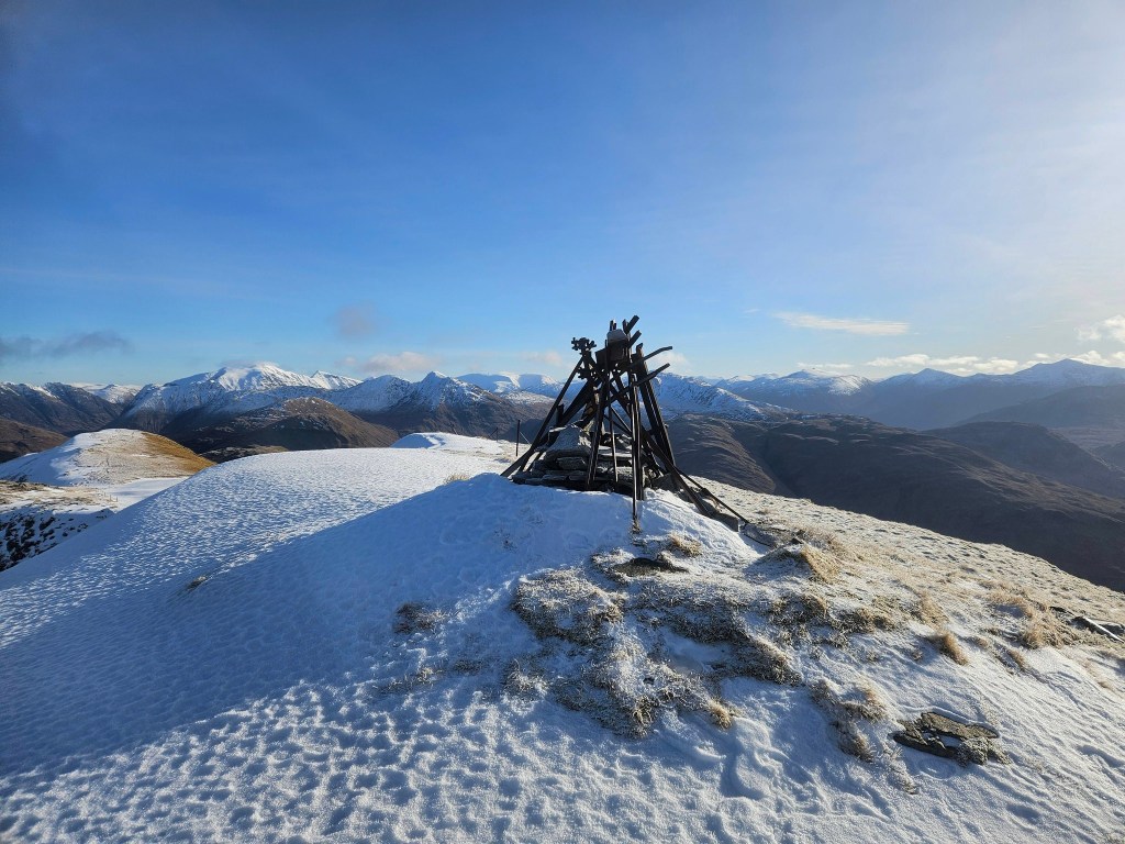 Raymond was still treading a careful path back to full fitness and headed for the nearby Graham of Tom Meadhoin. Although more modest in height than the surrounding Munros, the views on the ascent and from the summit more than justified the choice of hill.