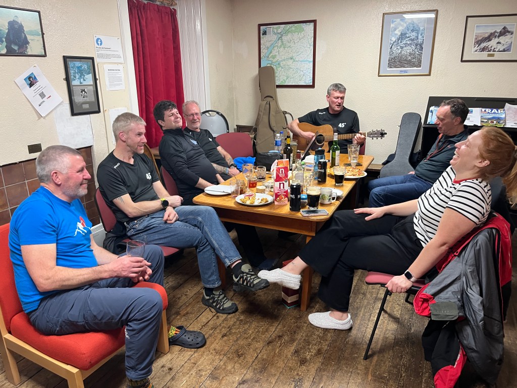 Weather in Scotland so far in 2026 had been nothing short of abysmal, especially for those on the north and east sides of the country. Great hillwalking days had been very few and far between. There was a big BUT though for the club’s February meet – an unexpected but very welcome weather window signalled bright sunshine and crisp snowy hill conditions. Excitement was rife!
