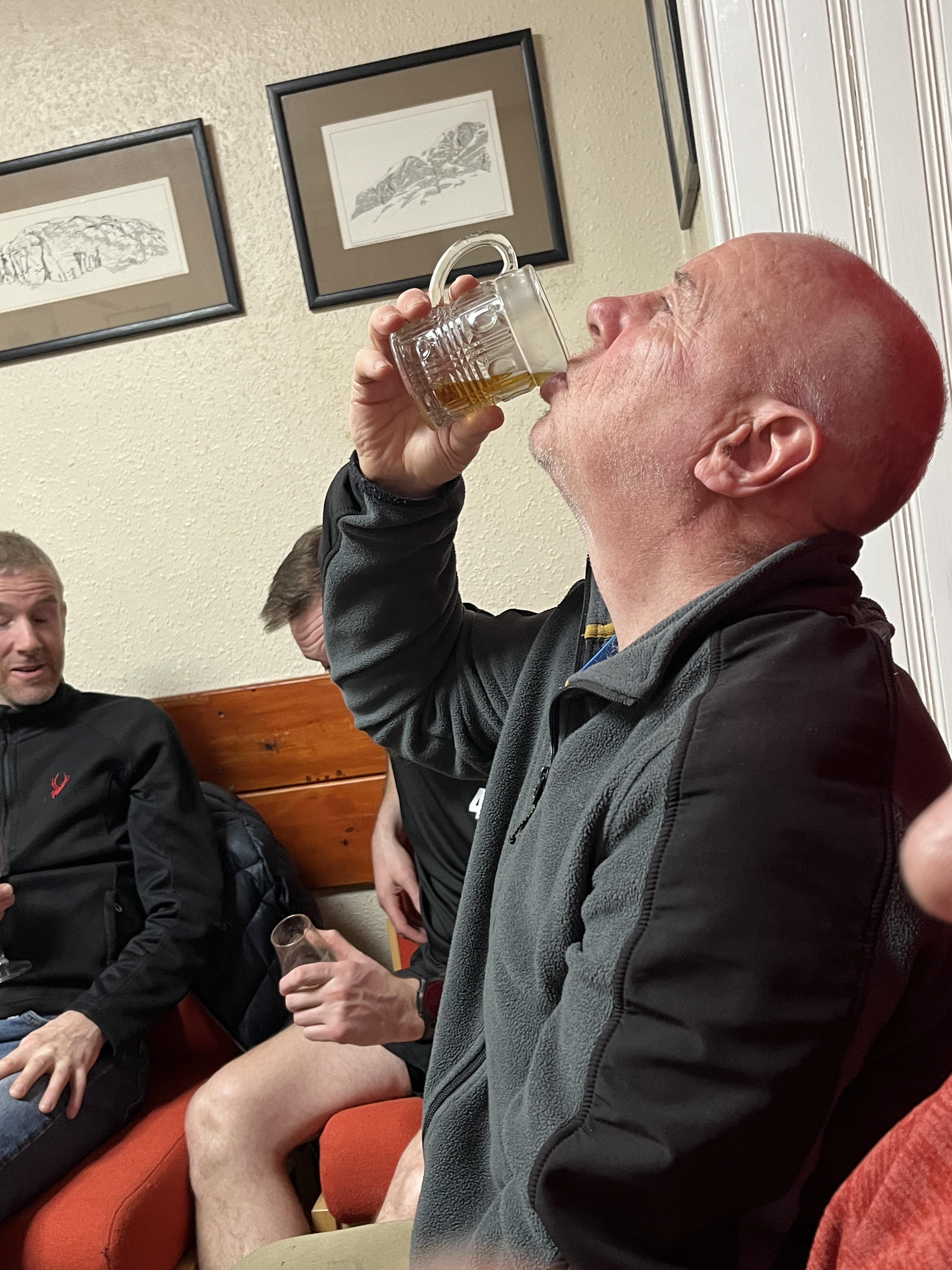Craig took the opportunity to bag the two Munros, Creise and Meall a’Bhùiridh from the Glencoe ski centre. Though not the toughest winter walk, the stunning views were fine reward for his effort. In need of refreshment after his climb he met up with Norrie and George at the Loch Leven Hotel where even the price of a pint – a staggering £7.80 !!! couldn’t wipe the smile off his face.